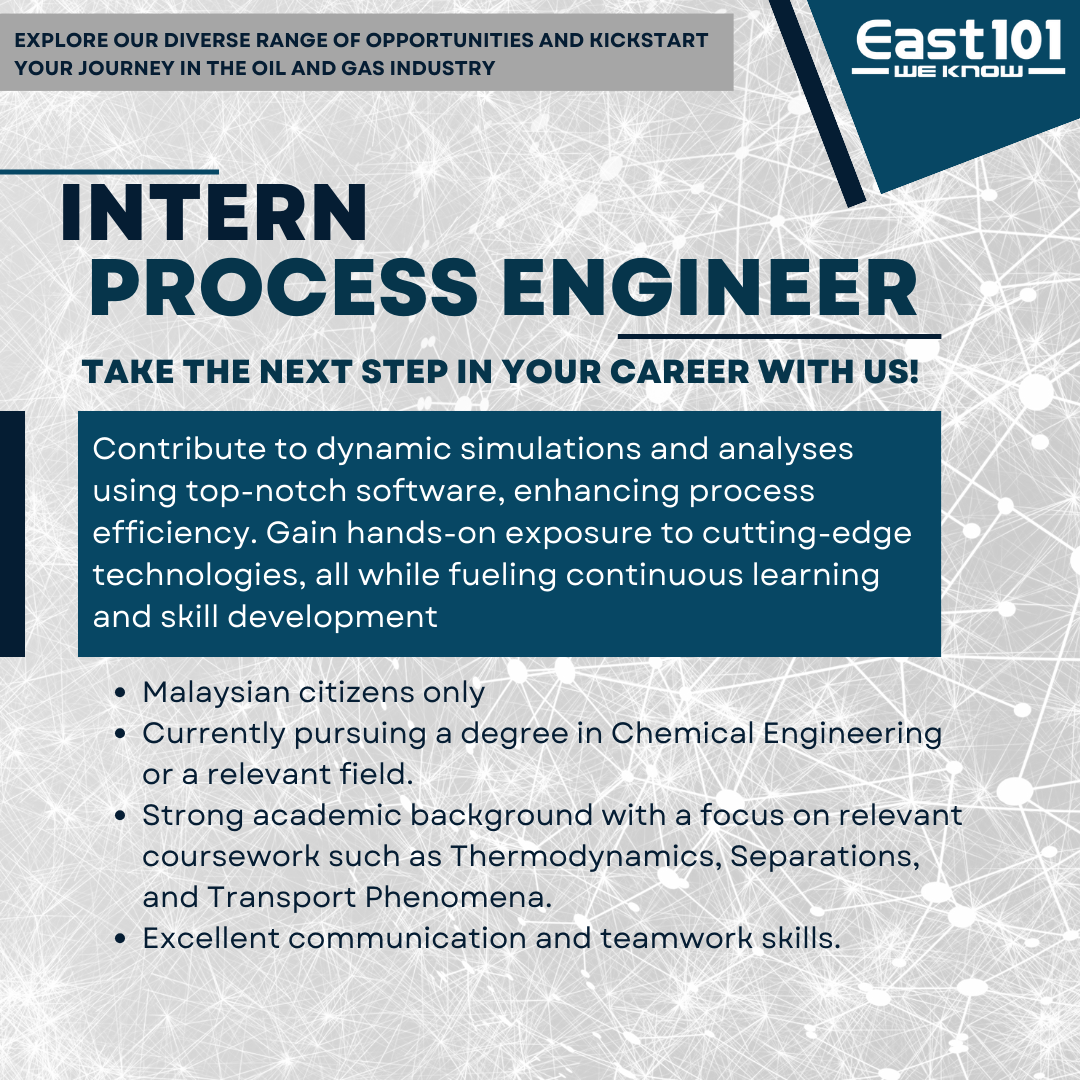 Apply here: Job Application Form - Intern Process EngineerFor any inquiries, please email to human-resources@east101.com