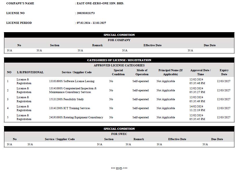 - 13141000S : Computerized Inspection & Maintenance Consultancy Services